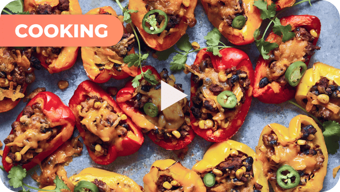 Шарене паприке пуне житарица, пасуља и сира за обилан, уравнотежен оброк. ?✨
